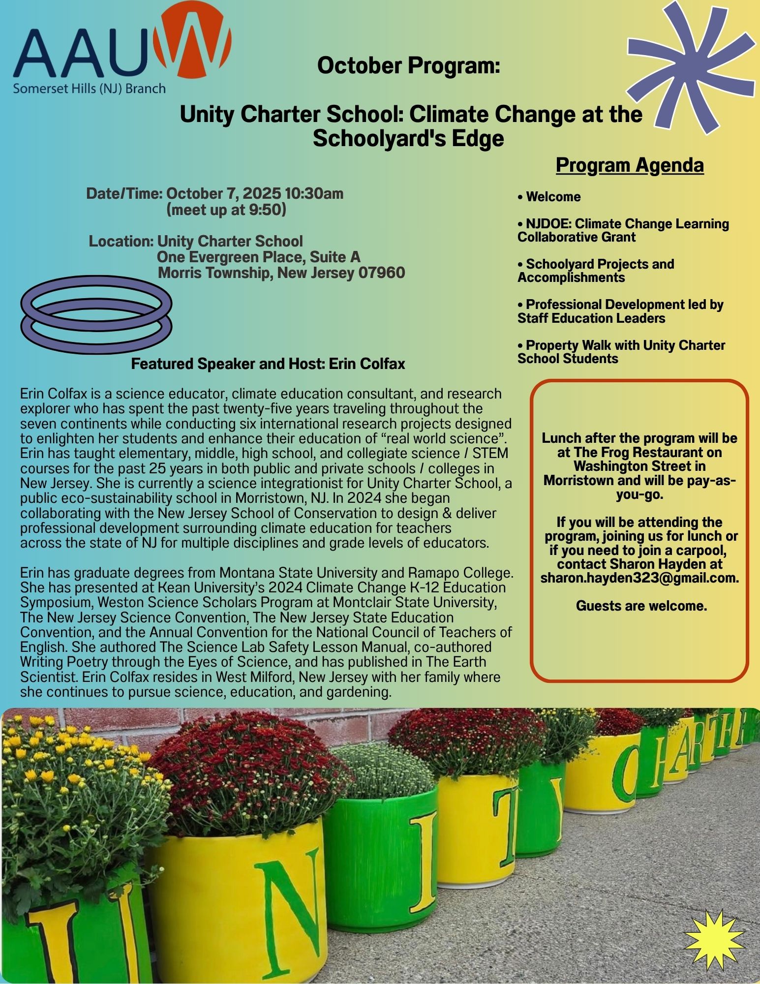 AAUW (National) is the oldest women’s organization in the USA. The AAUW mission is to advance equity for women and girls through advocacy, education, and research. The Somerset Hills branch of AAUW has general meetings and various interest groups. Our major fundraiser is our annual used book sale.